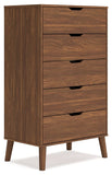 What do you get when you mix a minimalist profile with a warm finish? With sleek simplicity and a rich auburn hue, this chest of drawers delivers cool, contemporary style with a nod to mid-century modern design. Spacious drawers packed with ample storage possibilities and a hardware-free aesthetic complete your restful retreat with exceptional form and function.