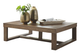 Oversized yet far from overdone, this designer coffee table masters the art of simplicity. Bold, blocky profile is enriched with plank-effect styling and a textured grayish brown finish for a look that's cool and contemporary and a vibe that's warm and inviting. Its generous scale makes it a natural complement for spacious sectionals.