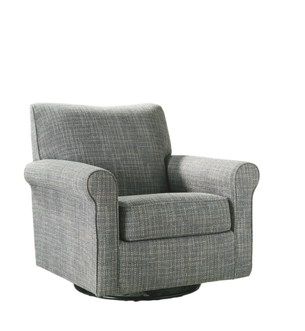 Sporting a tantalizing tweed weave fabric in such a soothing blue hue, this swivel glider accent chair gives the classic roll arm chair a modern twist. Smooth, 360-degree swivel caters to your comfort and your viewing pleasure. Gentle glider feature is designed to rock your cares away.