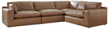 Catering to your contemporary lifestyle, the Emilia sectional is a handsome marriage of masculine and feminine sensibilities. Feather-fiber cushions and bolster pillows soften the look of its chunky, linear silhouette. Warmly hued leather match upholstery levels up the affordable luxury. And you'll never run out of ways to stage this seating arrangement—each piece is fully finished on all sides and capable of standing solo. Urban sophistication has never been more versatile.