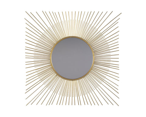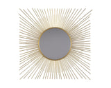 This accent mirror is a contemporary musing. Breathtaking sunburst design shines in goldtone metal. Beautifully large scale makes this piece the center of attention.