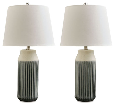 Afener - Blue / Beige - Ceramic Table Lamp (Set of 2)