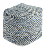 Square Hand Made Pouf. Made of Recycled Denim. Shell with zipper with 100% EPS beads filler. Spot Clean Only.