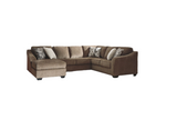 Kick back in style with this sectional. Taking neutral to a new level the heavy textured chenille Upholstered in teak brown is sure to blend beautifully into your scene.