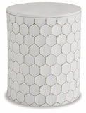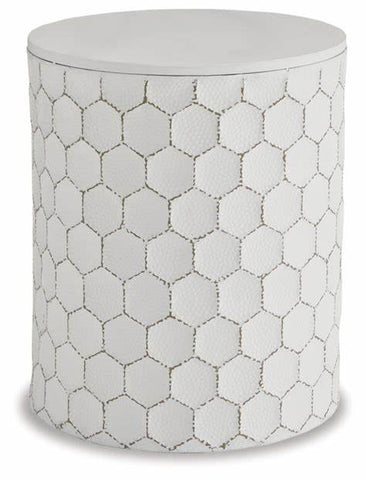 Trendsetting and contemporary. Take a fashion risk with this accent stool. Outlined honeycomb design on hammered metal is teeming with texture. Décor on the solid top completes the look with style.