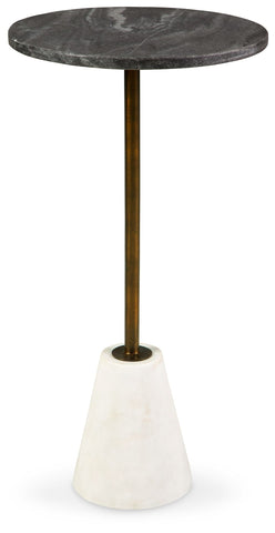 Marvel at the marbled mastery of this high-end accent table. Made of beautiful black and white marble, the round tabletop is supported by a sturdy goldtone pedestal on a white marble base. With a sleek, tapered profile, this space-saving table is striking from every angle.
