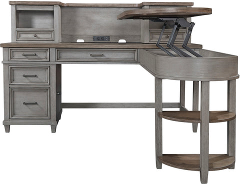 This Caraway Aged Slate Pedestal Desk and Hutch offers a sleek and stylish design that will elevate any home office. Made of sturdy materials, it features a spacious desk for working and a hutch for storage. The aged slate finish adds a touch of sophistication.