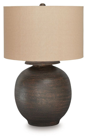 Brighten up your space with the casual, earthy elegance of this lamp. Outfitted in an antiqued brown hue, its simple curved form ushers in an air of effortless beauty when placed on an accent table or desk.