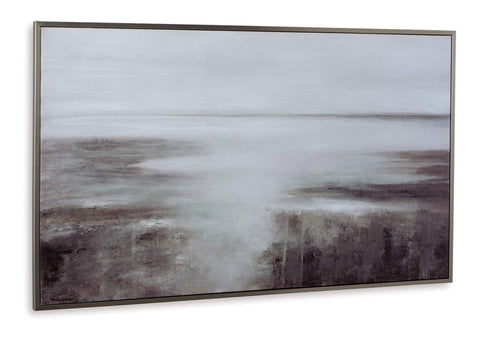 Coastal meets casual contemporary in this wall art. The piece recalls the placid movement of water, transforming shades of gray, taupe and white into a peaceful waterscape. Framed and ready to hang, it ushers a soothing seaside mood into your space.