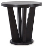 For the ultimate in casual contemporary styling, accent your sofa or loveseat with this chic end table. Designed with a round top and trapezoid-shaped legs, its geometric elements create a bold, eye-catching look.