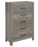 Modern lines and rustic styling are paired to create the look of the Corbin Collection. The 3D printed paper veneer's texture is highlighted by a gray finish for a realistic wood look.