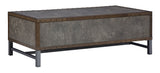 Reinvented for the here and now, this lift-top coffee table rocks vintage industrial design with a traditional vibe. Its metal accent trim and bronze-tone metal base frame are ready to embrace the modern demands of everyday life. Two spacious storage bins provide additional storage, while the center lift top transforms into a casual work center or extra dining space when needed.