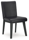 This dining chair exudes modern sophistication. Finished in a sleek black wood-tone with black faux leather upholstery for added comfort and style, it brings a beautifully balanced look to the table. A simply striking feast for the eyes—now your only worry is who to invite for dinner.