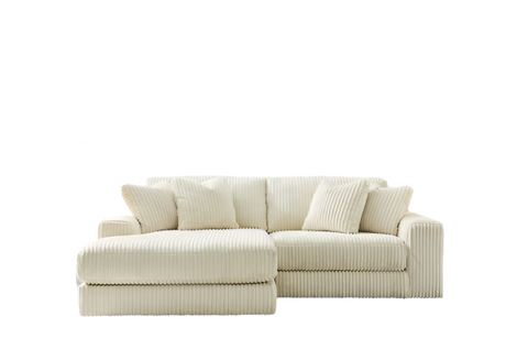 Plush and posh. Showcase your eye for on-trend texture with the statement-making cord upholstery of this sectional with chaise. Its stunningly soft fabric entices in an ivory hue, complementing contemporary color palettes. Sink into the cushions and plan to stay a while—this cozy living room centerpiece highlights your high-end approach to comfort and style.