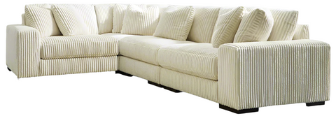 Plush and posh. Showcase your eye for on-trend texture with the statement-making cord upholstery of this sectional. Its stunningly soft fabric entices in an ivory hue, complementing contemporary color palettes. Sink into the cushions and plan to stay a while—this cozy living room centerpiece highlights your high-end approach to comfort and style.