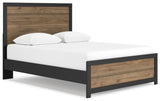 Relaxed yet striking, this full panel bed brings casual beauty and function to your dream destination. The delightful two-tone treatment blends a fresh replicated walnut grain with a matte black finish that's easy to love. Its simplicity lends a contemporary touch that suits your bedroom's style to a T.