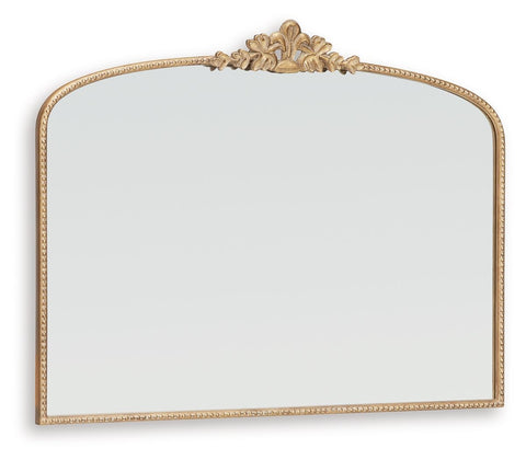 The delicate goldtone framing of this accent mirror adds a sense of stately elegance to your decor. Well-suited to traditionally inspired rooms, it lends a romantic feel to the space above a console or dresser. Reflecting your taste for timeless styling, the mirror is topped with an exquisitely detailed adornment.